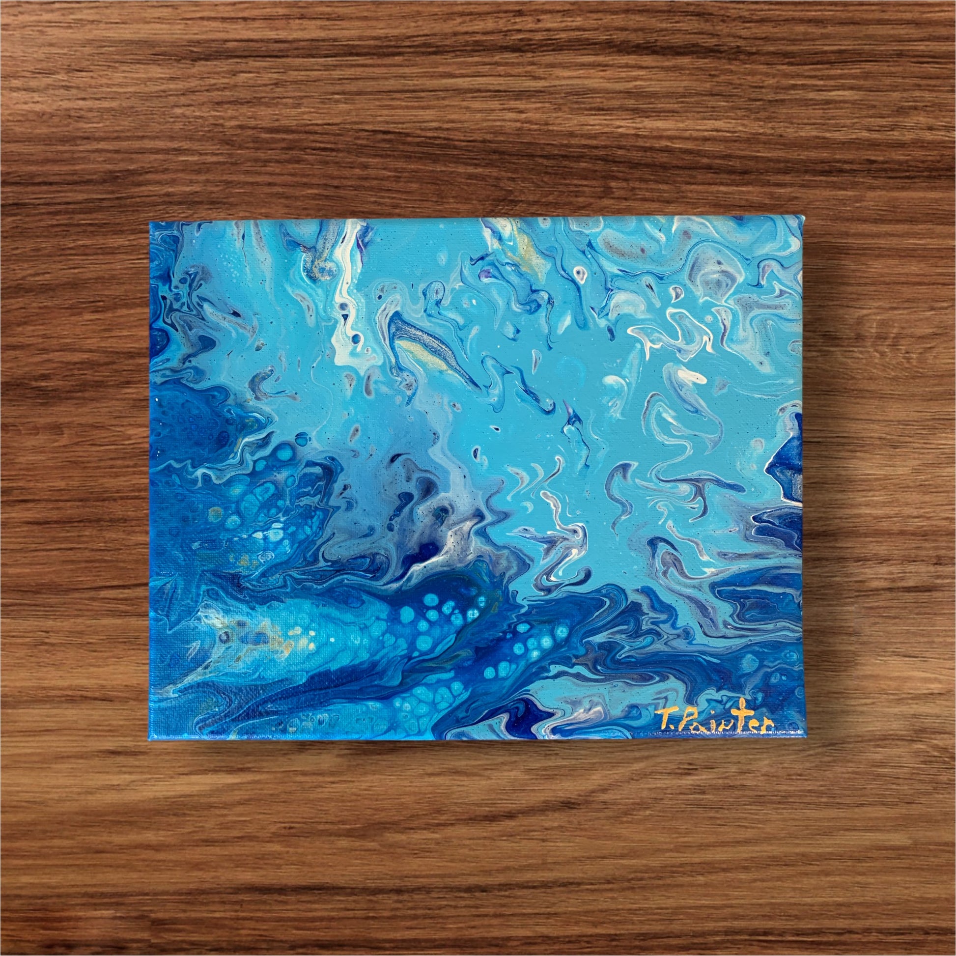 Serenity of oceans, harmony of skies fluid art on 8x10 inches canvas. Each creation was envisioned and crafted by artist: Tim Painter.