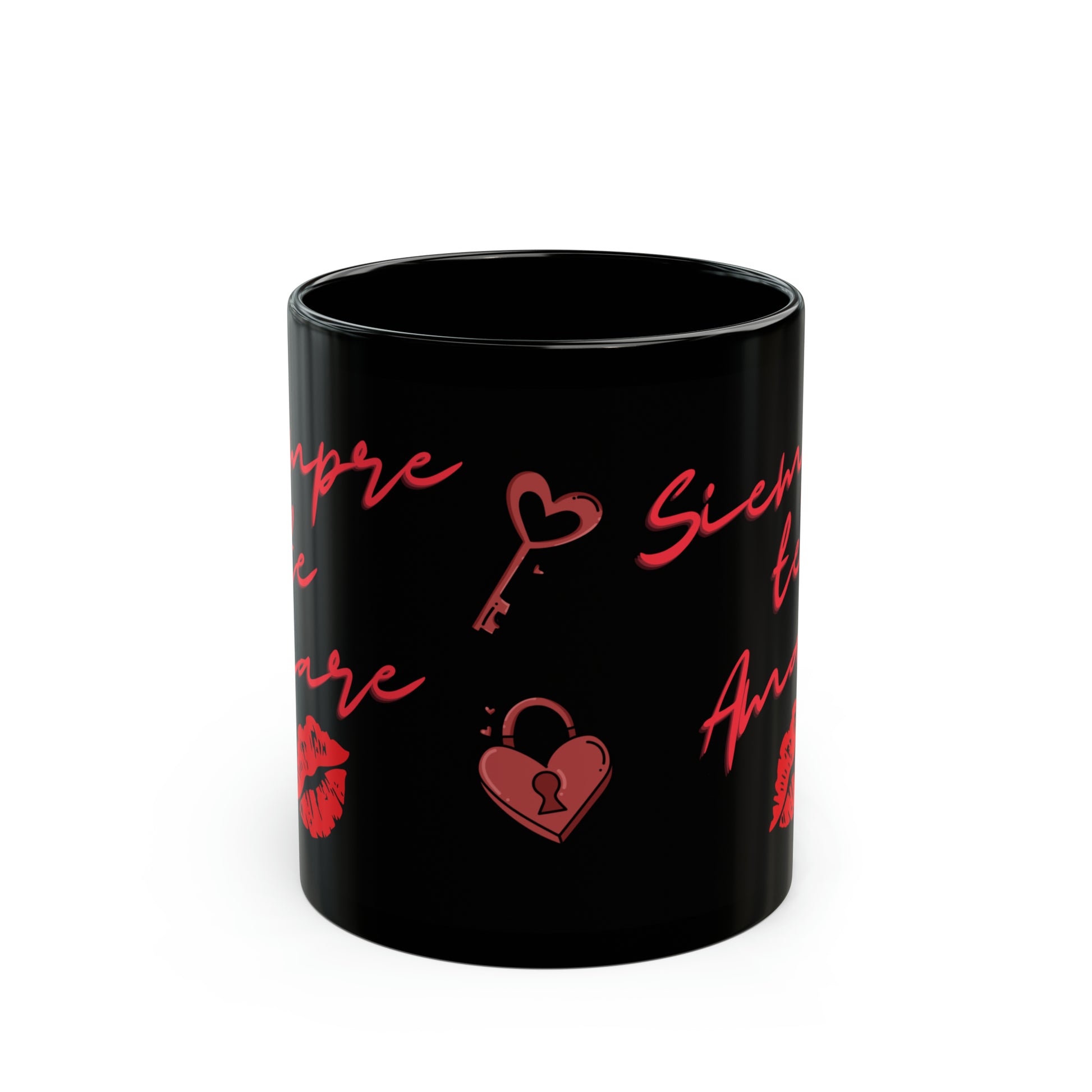 Siempre te Amare (I will always love you) Spanish Mug. Warm your soul with a nice cuppa out of this perfectly sized black ceramic mug. It’s BPA and lead-free, microwave and dishwasher-safe, and made of black durable ceramic in 11-ounce sizes. The high-quality sublimation printing makes this black ceramic mug the perfect gift for your true coffee, tea, or hot chocolate lover. .: Material: 100% ceramic with a glossy finish .: One size: 11 oz (0.33 l) .: Microwave and dishwasher safe .: Blank product sourced from China .: C-shaped easy-grip handle .: Lead and BPA-free