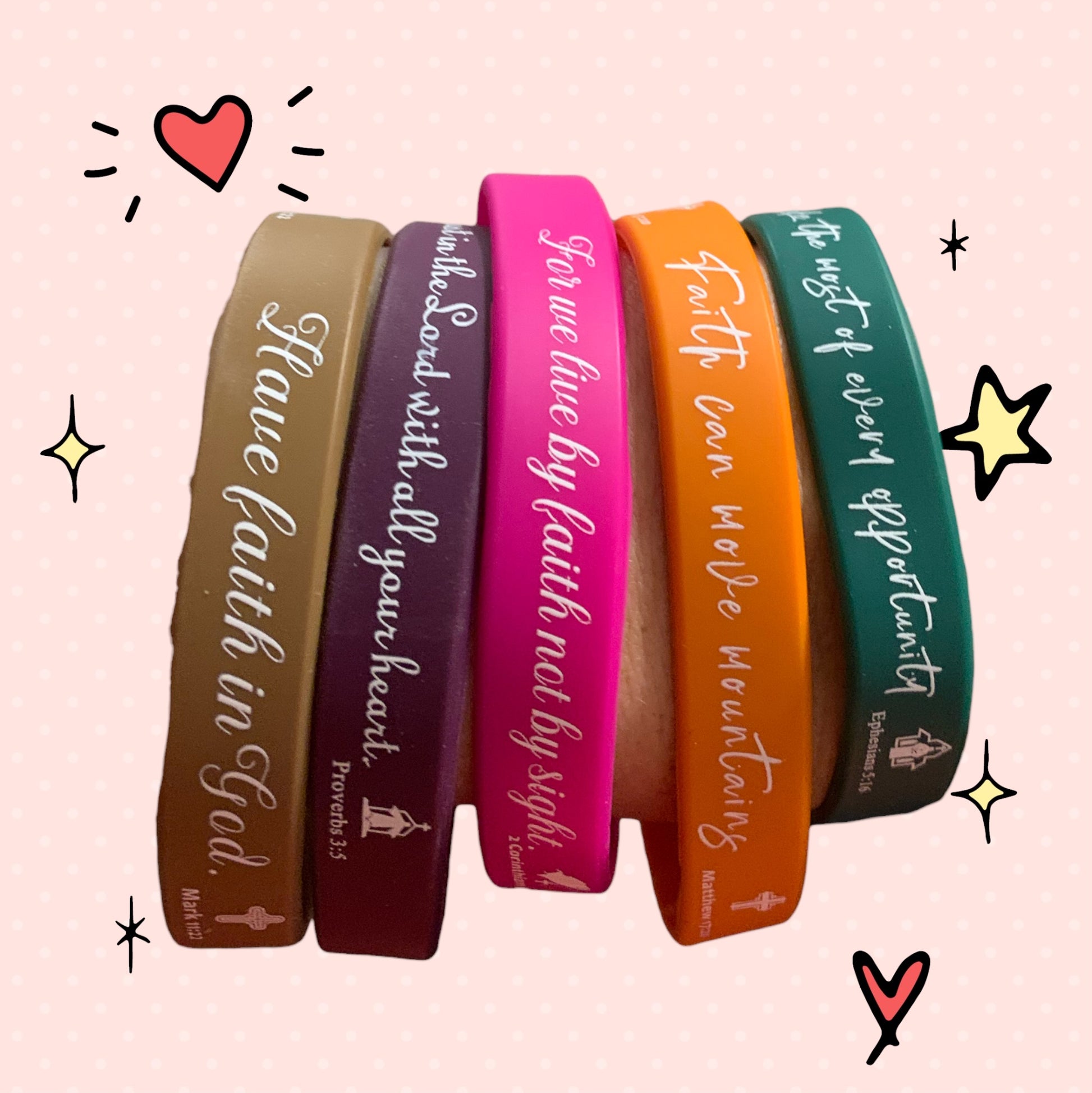 Silicone Bible Verse Bracelet. Sold separately, colors and Bible verses very.