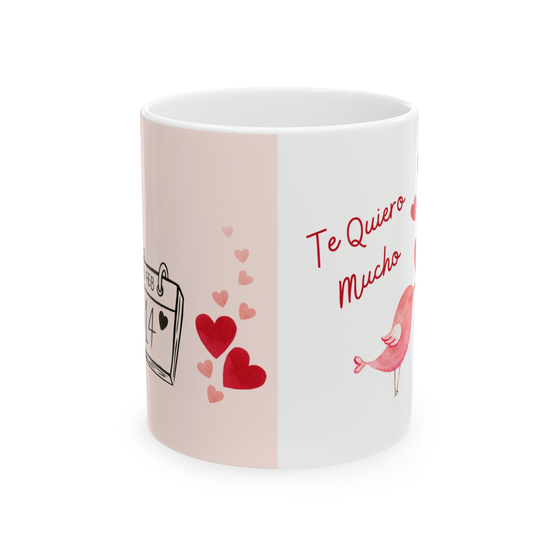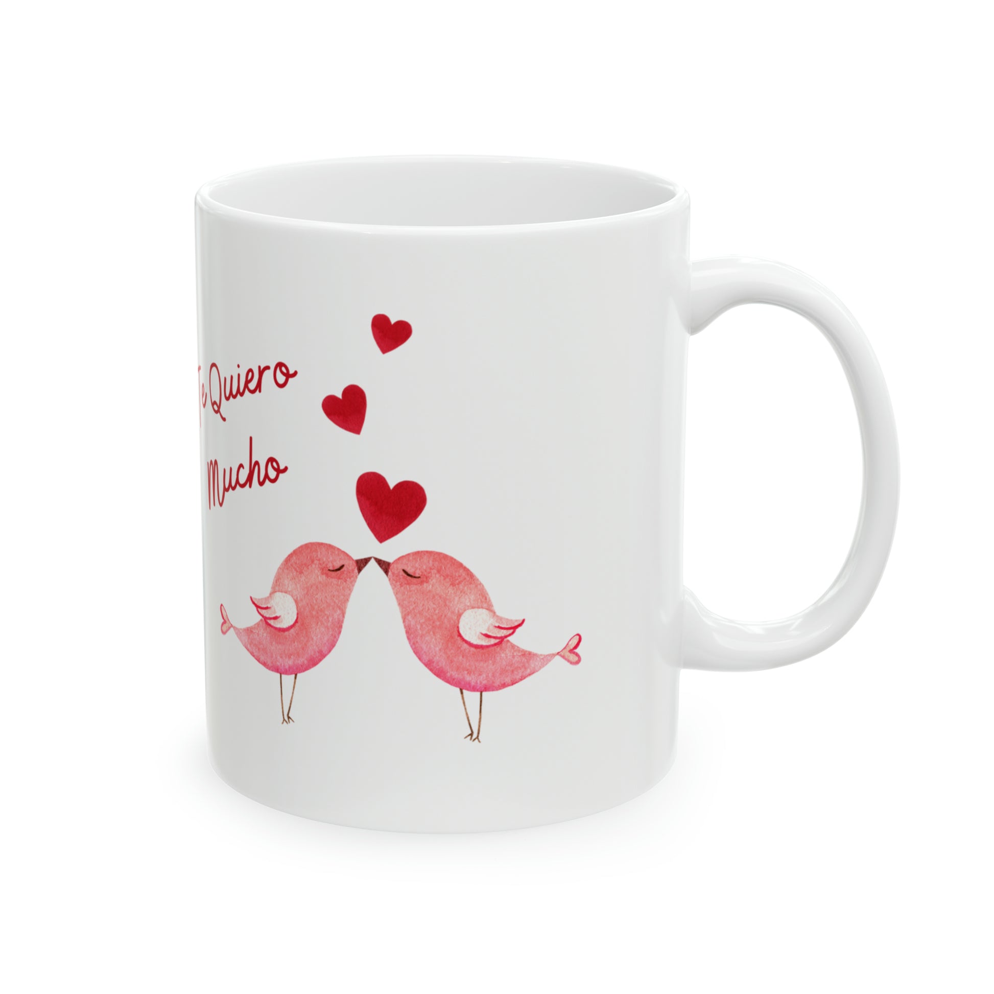 Te Quiero Mucho Bird Heart Valentines Mug. I love you very much Spanish Valentines Mug. Make the moment even better. It’s BPA and Lead-free, microwave & dishwasher-safe, and made of white, durable ceramic in 11-ounce size. Thanks to the advanced printing tech, your designs come to life with incredibly vivid colors – the perfect gift for coffee, tea, and chocolate lovers. .: These 11oz (0.33 l) mugs are made with durable white ceramic so that your prints can stand out. .: All mugs feature a comfortable C-handle and a shiny finish so that they're both easy to use and great to look at. .: Drink confidently on a daily basis as all mugs are lead and BPA-free.