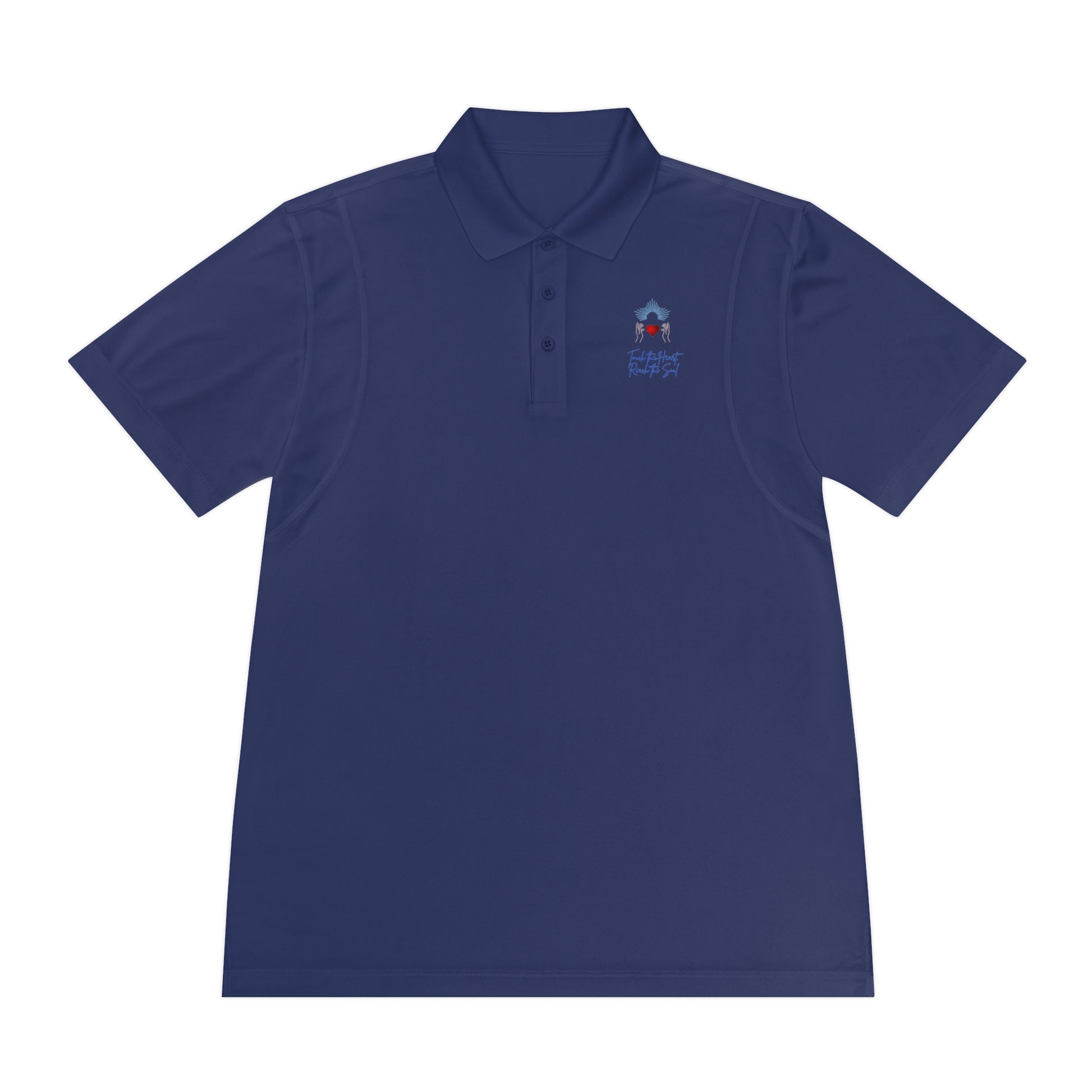 Touch the Heart Logo Men's Sport Polo Shirt. Few items are as iconic as the polo shirt and these ones come to add style when peak performance is part of the day. Made with 100% soft polyester, these men's sport polo shirts are moisture-wicking and snag resistant so that they stay comfy and like new for a long time to come. Each shirt comes with a classic flat-knit collar and a 3-button placket with dyed-to-match rubber buttons for that timeless style.