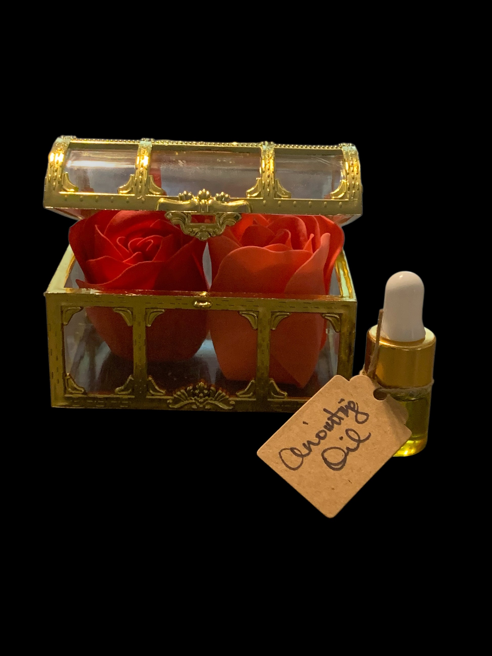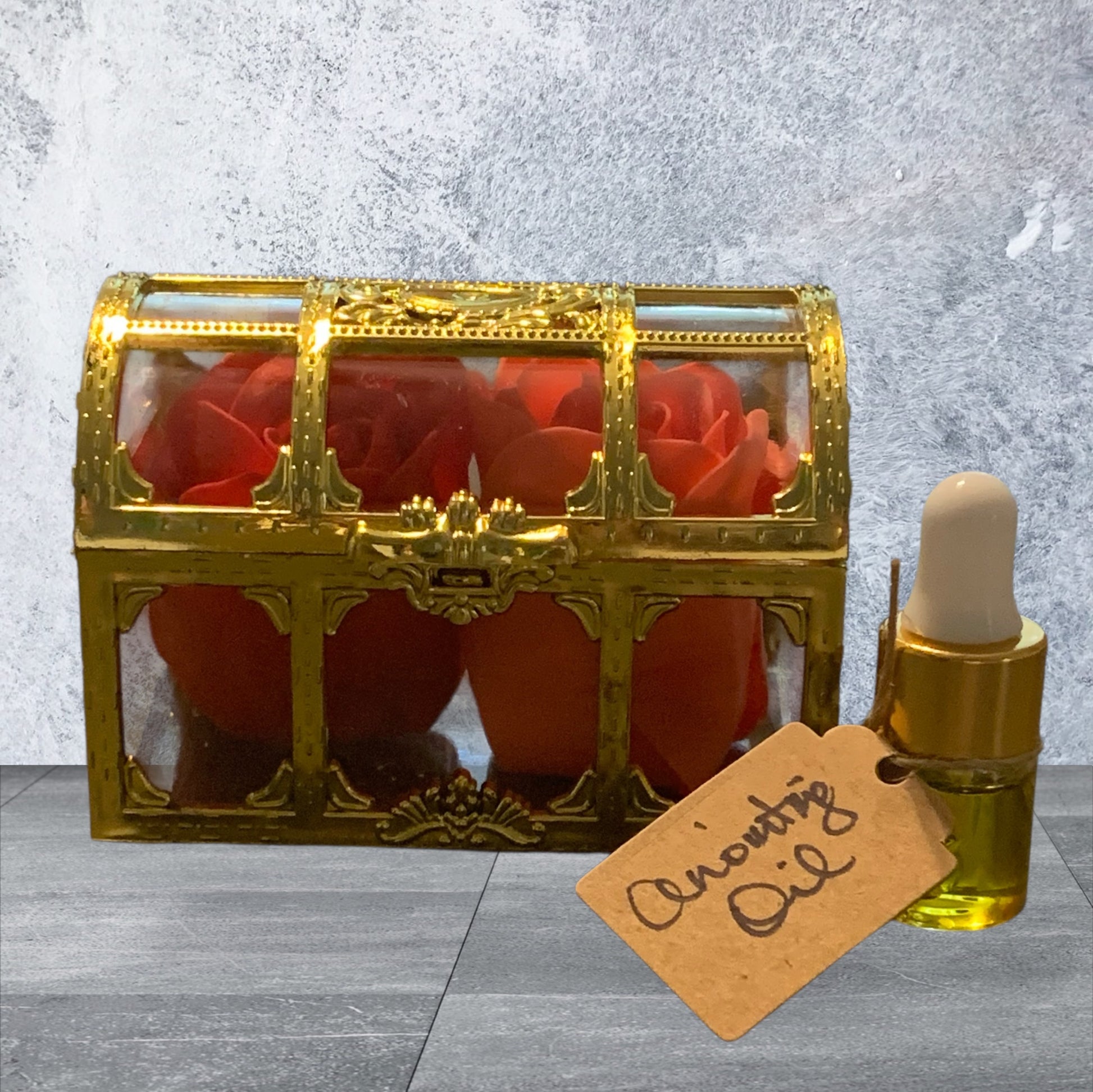 Enhance your spiritual practice with our Treasure Chest Anointing Oil. This carefully crafted oil is stored in a beautiful treasure chest, adding a touch of spirituality to your space. Made with high-quality ingredients, it offers a potent aroma to elevate your spiritual experience.
