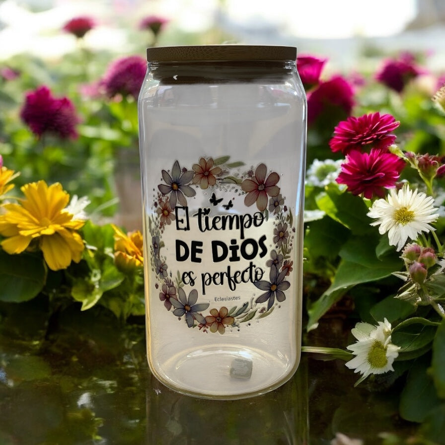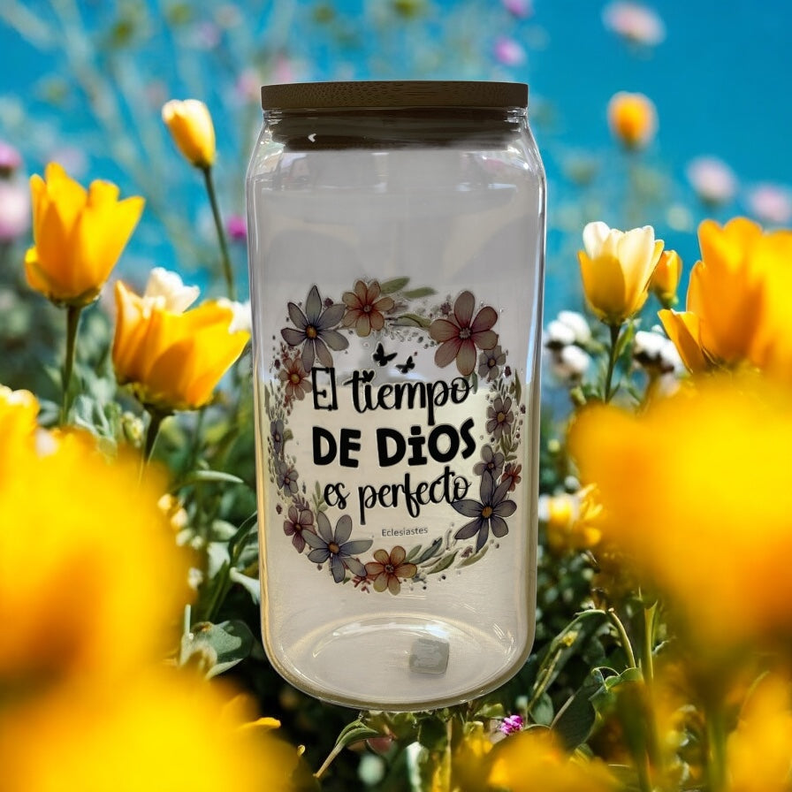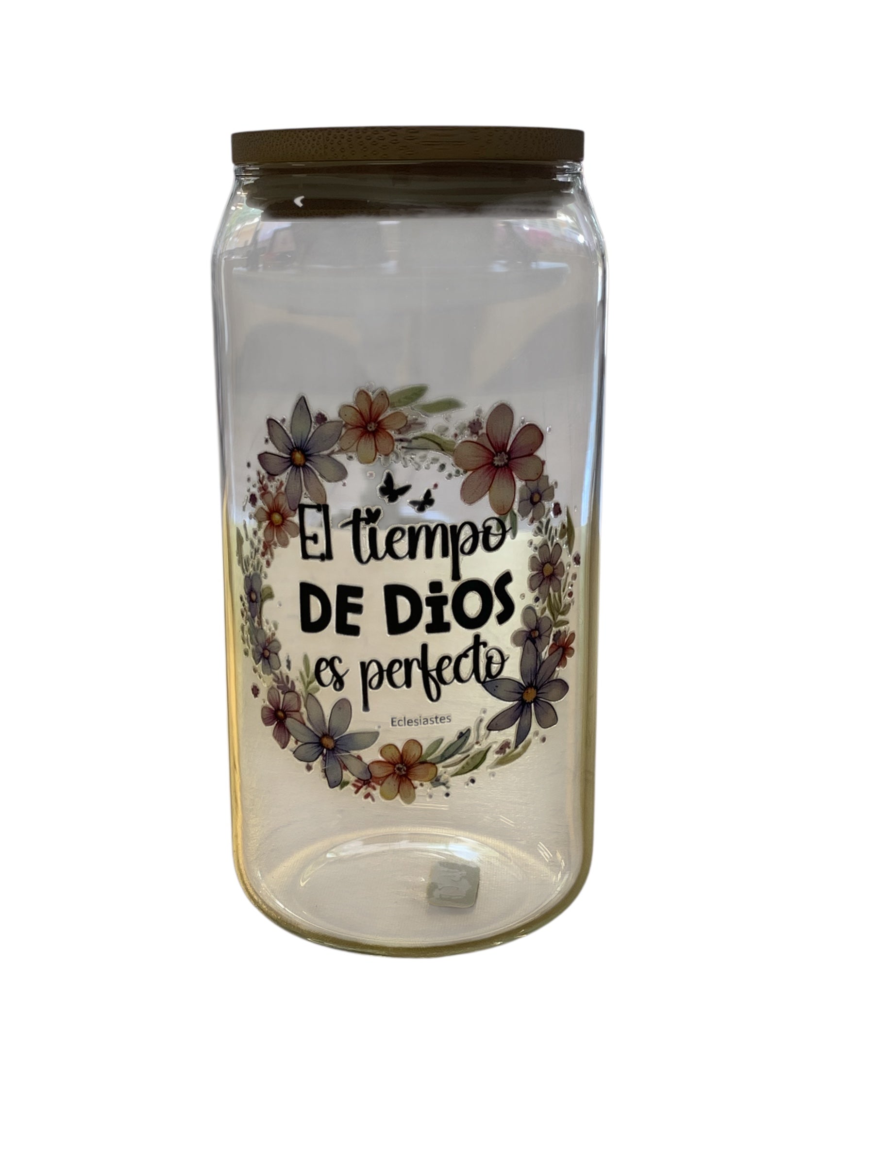 Christian Affirmation Glass Container 16 ounce with Wood Lid